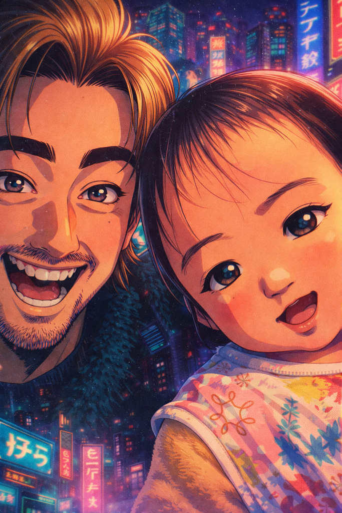 チャットGPTも良く使うんですが最近娘と撮った写真をレトロフィーチャーな美学を備えた80年代風作ってもらいました^_^
